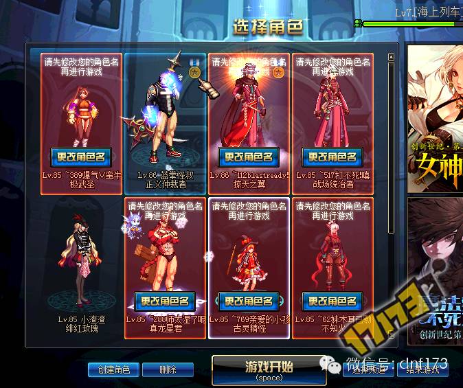 进入游戏后,我们会看见,所有国服角色都已经复制过来了。这时候我们想要选择角色,就要先进行改名。我改名之后遇到了无法进入游戏一直让我改名的状况,如果大家也遇到这种状况,可以选择退出游戏重上一下,就可以进游戏了。