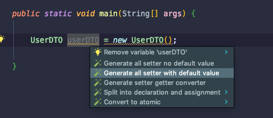 可以使用这 GenerateAllSetter 提供的功能,自动调用所有 Setter 函数(可填充默认值),然后自己再跟进实际需求设置属性值。