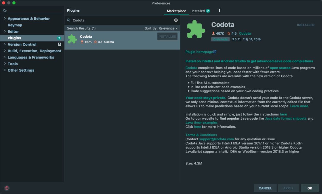 可以点击下图所示“Add Codota to you IDEA” 了解安装步骤。