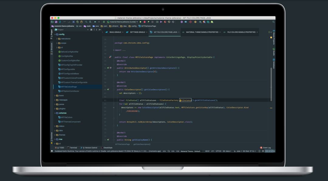IDEA 支持各种主题插件,其中最出名的当属 Material Theme UI。