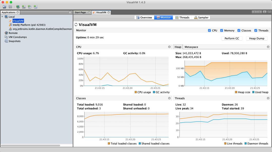 IDEA 中还有 VisualVM 的插件,可以在本地应用启动时,自动启动 VisualVM。