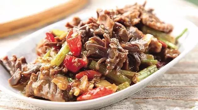 鸭胗两侧的白色筋膜一定要片净,否则成菜后嚼不动;鸭胗处理干净后,放入冰箱稍冻,可以降低刀工的难度;鸭胗下锅翻炒时,一定要急火快炒,若是火候稍过,成菜口感就欠佳。