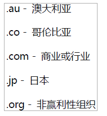 不同的顶级域有不同的含义,分别代表着组织类型或起源国家/地区。请参见如下顶级域名实例: