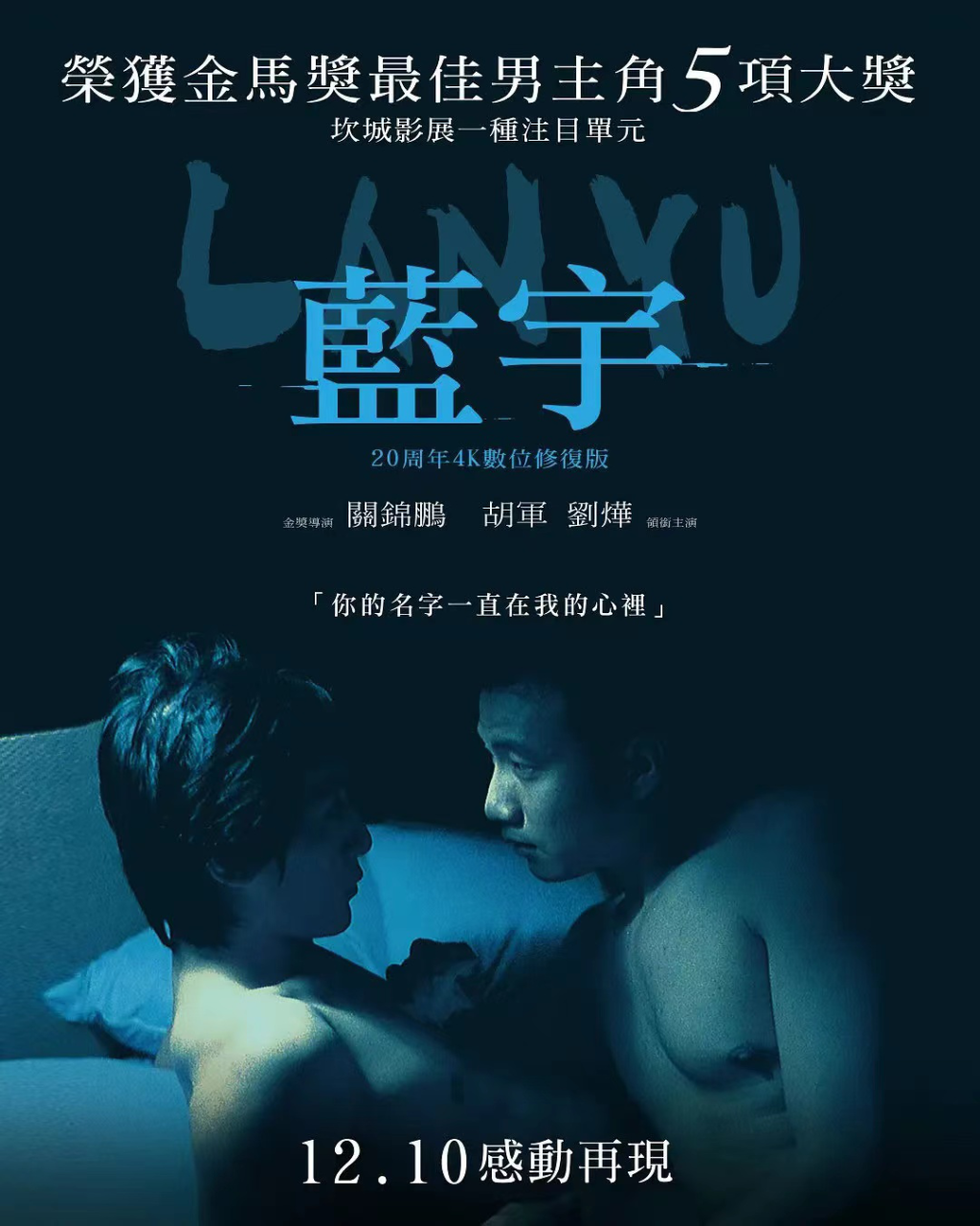 胡军与刘烨被认为假戏真做的电影《蓝宇》,于2001年11月在中国香港上映,20年后又在中国台湾重映。