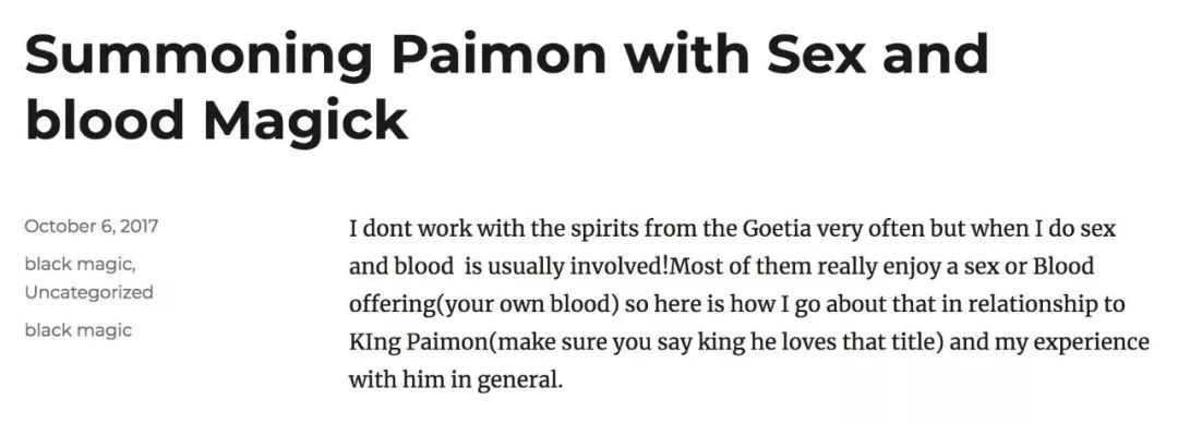流传至今的《所罗门的钥匙》,关于派蒙的祭祀,书中含糊其辞,只提到召唤派蒙需要某些献祭。