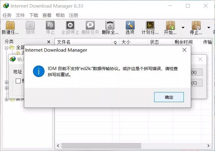哎呀真尴尬,IDM不支持ed2k传输协议。。。翻车了,翻车了