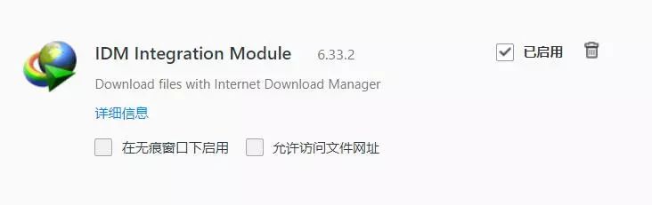 先说说缺点,界面交互奇丑无比,再就是支持的传输协议要比迅雷少。还有就是兼容性没有迅雷好,需要在浏览器中安装IDM Integration Module插件才行。