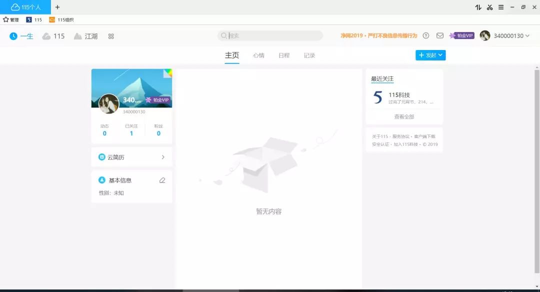首先我最想说的是115个人网盘电脑端做的太差劲了。。。个人感觉就是套了一个浏览器的壳子,体验很是差劲。但其实115是在国内做的算不错的一家网盘提供商了,前几年还要筹备着上市。算了,看看下面我截图的界面,甚是简陋。