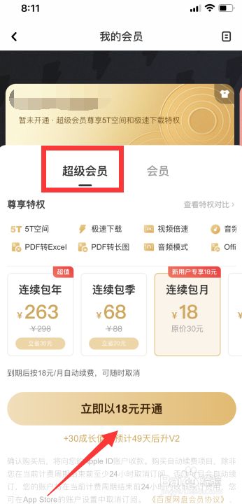普通会员连续包年是96/年迅雷会员体验激活,合计8元/月。超级会员连续包年是263/年,合计21.9/月。另外还可以包季度,或者是按月续费,这样会比按年续费每个月贵几块钱。