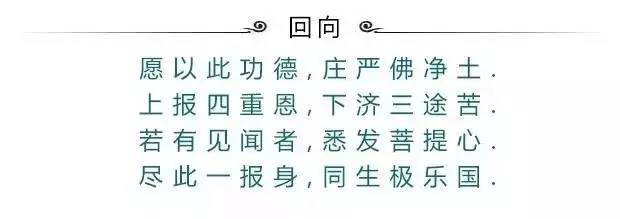 回向偈是佛教用词。回向偈的用处很大,修行的人不论念经念佛,念完了,一定要把回向偈念一遍的。“回向”有归拢和趋向的意思,就是要把念佛念经的功德汇集到一个目的上去。这个目的就是求生到西方极乐世界去。念回向偈的时候,也和念佛一样,要一字一句都从心里经过,不能随口念念就了事的。一.回向法界“愿以此功德,回向诸众生,解脱三界苦,皆发菩提心。”“愿以此功德,普及于一切,我等与众生,皆共成佛道。”以此功德愿证佛自性,降伏烦恼怨敌之过患,生老病死汹涌之波涛,愿度众生解脱轮回海。二.忏悔业障、解冤释结“愿消三障诸烦恼,愿得智慧真明瞭;普愿灾障悉消除,世世常行菩萨道。”“愿消三障诸烦恼,愿增福慧与寿考;普愿灾障悉消除,往生极乐菩萨道。”“我昔所造诸恶业,皆由无始贪嗔痴;从身语意之所生,一切我今皆忏悔。”解冤咒(1):“解结解结解冤结,解了多生冤和业,洗心涤虑发虔诚,今对佛前求解结。药师佛药师佛、消灾延寿药师佛、随心满愿药师佛、南无药师琉璃光如来。”(3遍)解冤咒(2):“因果生生报不停,恶缘孽债两相寻,从今解脱千年结,善道频开福德门。南无药师琉璃光如来、南无药师琉璃光如来、南无药师琉璃光如来。”(3遍)三.求生净土古德教我们要经常发愿:“临命终时,身无病苦,心不贪恋,意不颠倒,并且期望圣人前来引导。