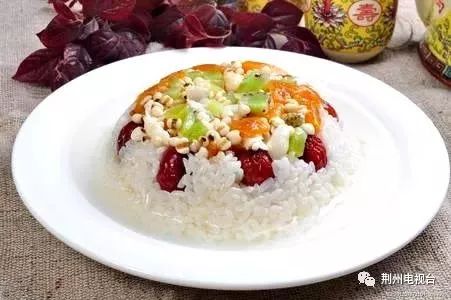 荆州的地方传统名点,在全国八宝饭中独树一帜,原是清代的一位御厨从宫廷出来后,到荆州城开设饭馆流传下来的。吃到口里,觉得润滑溶消,香甜透味,油而不腻,甜而不厌,于是”浅盏小勺细品尝,离席数时回味长”的赞语。