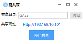 软件界面异常简单,点两下就行了,首先选择共享目录,然后点击共享就ok了,如下图所示。
