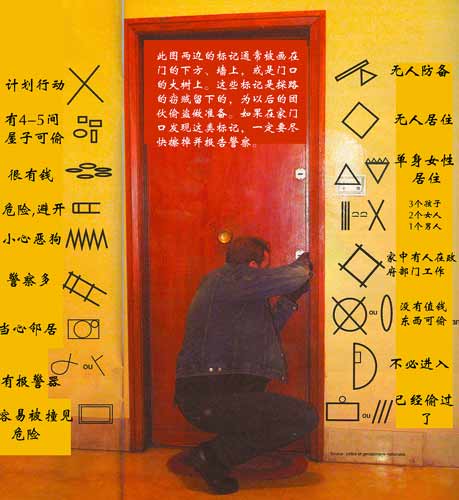 另外,箭头符号也值得注意。它代表居民的作息时间。箭头指向左边表示居民白天不在家,指向右边则表示居民晚上不在家。这些信息对于小偷来说非常有用,可以帮助他们选择合适的时间进行盗窃。