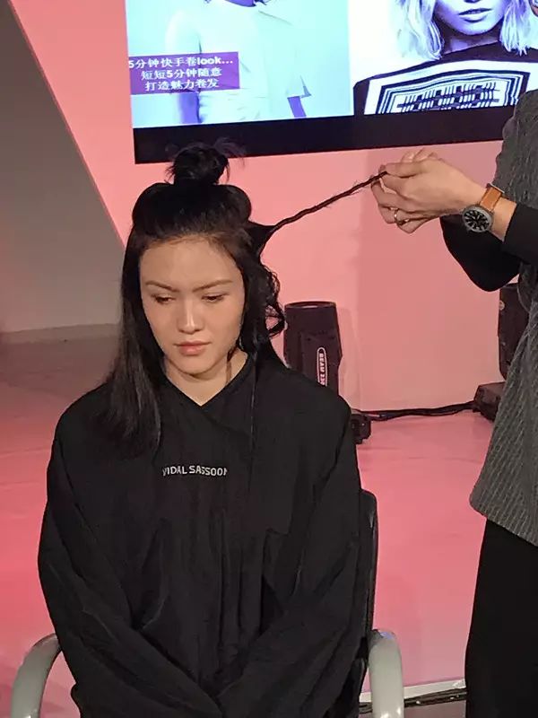 发型师演示弹力素用法,能提升卷发速度、保持卷发效果至少三倍。