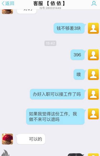 杨女士想在QQ上联系对接客服,但是没说到几句话正规网上兼职打字员,对方各种理由搪塞,最后消失了。