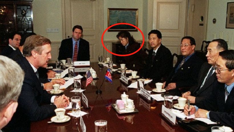 高英姬去世以后,金正日就与小他22岁的女秘书金玉同居。金玉出生于1964年,毕业于平壤音乐舞蹈大学,主修钢琴,自上世纪80年代初开始,一直到高英姬过世,担任金正日“技术书记”。所谓“技术书记”就是负责照顾朝鲜“劳动党”政治局候选委员级以上干部们的健康,每一个干部配有一名技术书记,通常由护士来担任。2006年1月金正日访问中国,金玉以国防委员会课长的头衔随行。她一直跟在金正日身旁,受到很高规格的接待。之后传出金日成已经迎娶了同居秘书,金玉成为真正意义上的“朝鲜第一夫人”。金玉为照片中远端女子,摄于2000年。