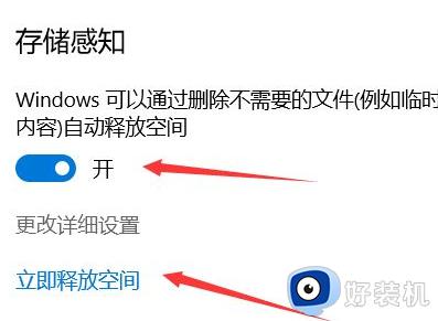 我们可以打开存储感知,因为它可能是处于关闭的一个状态,我们可以把它开启完成以后点击右侧这个小三角,在这里的话有一个非常实用的功能,它就可以清理自动的清理一些临时文件,我们点击勾选,勾选完成以后,它会包括一个自动用户内容的清除,我们把它打开,比如说每天清除一次,建议大家可以选择每天清除一次,这样的话能保证我们电脑流畅运行。