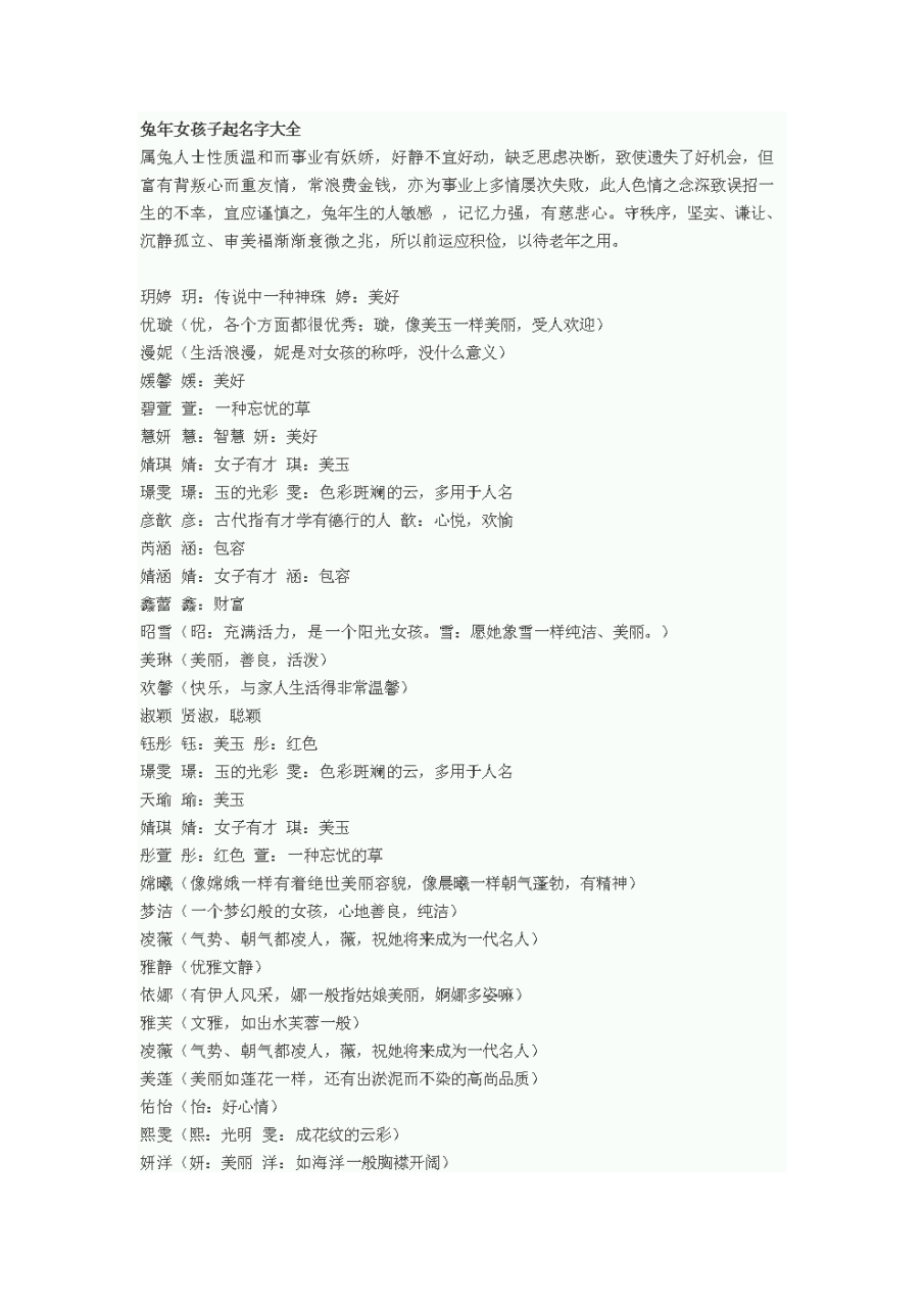 属兔的人,命中草木很旺盛很有福,所以属兔的人要是名字里带有草字头的字,不但象征一辈子有口福,而且性格顽强有气质,人生注定一帆风顺。如果用带心或者竖心旁的字作为名字的话,对于他们来说也是对招财有帮助的,属兔的人很心细,有这样名字的人特别蕙质兰心,而且非常聪慧,一生能受到很多贵人帮助,人生肯定能大富大贵。