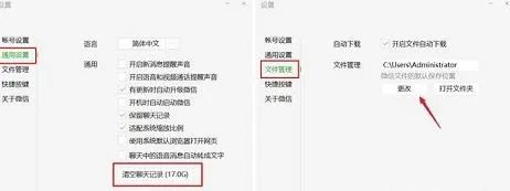2、在“通用设置”中就可以看到聊天记录的缓存了,可以将这些缓存删除来节省空间,也可以将聊天记录手动备份在其他盘。