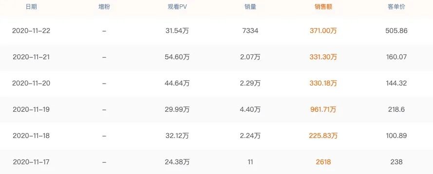 上周,是双十一结束后的第一周,各位主播的总体销售额都较上上周有大幅度的下降。
