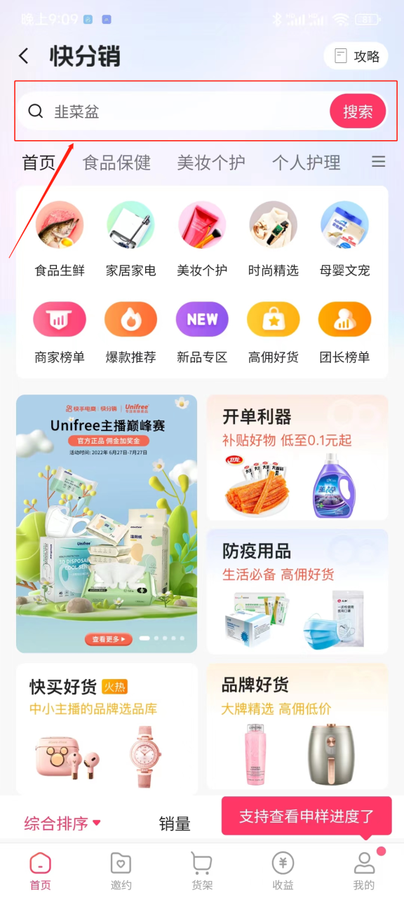 还是在快手小店的买家端,常用应用里有个推广订单,点击就能看到出单情况。