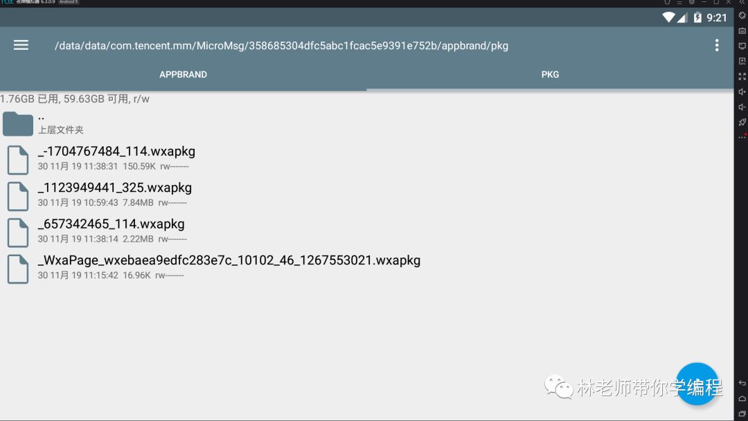 (在模拟器内搜索安装或自动下载后导入到摸拟器安装)用来找寻微信小程序源文件。