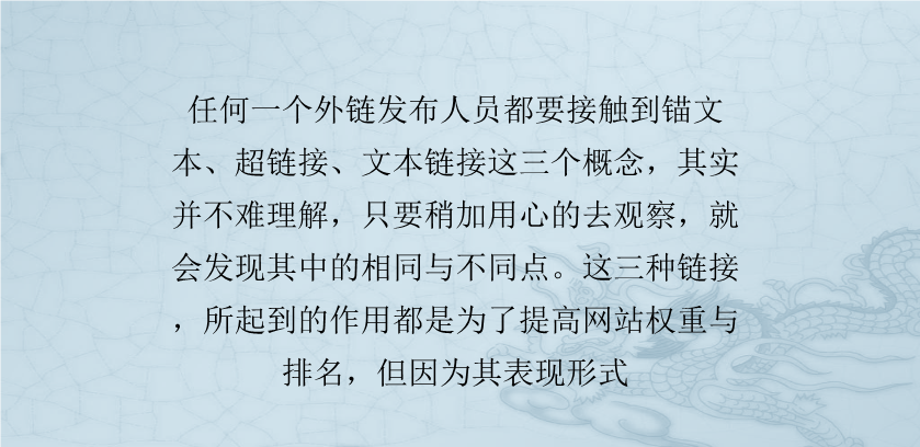 南京做SEO优化的站长都知道,提升关键词排名最基础的就是锚文本。但是不能认为只有定向锚文本才能针对性的提高某一关键词排名。现在决定关键词排名,尤其是首页排名,并不是通过外链来决定的,而是通过有效的点击来决定。所以我们在做外链的时候不要紧盯着锚文本,谨防被判断为锚文本作弊。所以我们做外链的时候,有宣传推广作用超文本链接,和纯文本链接也是不可或缺的,而且目前这两种形式的外链还是主流,是非常重要的。