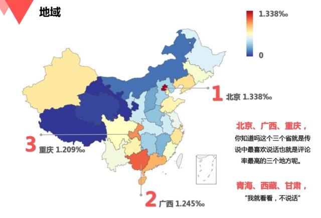 ▲地域分布:京桂渝评论率最高、青藏甘最低