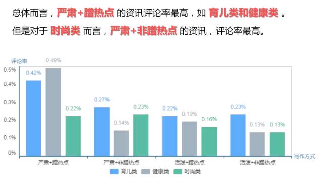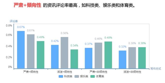 ▲写作方式:严肃+倾向性的资讯评论率最高;严肃+蹭热点的资讯评论率最高