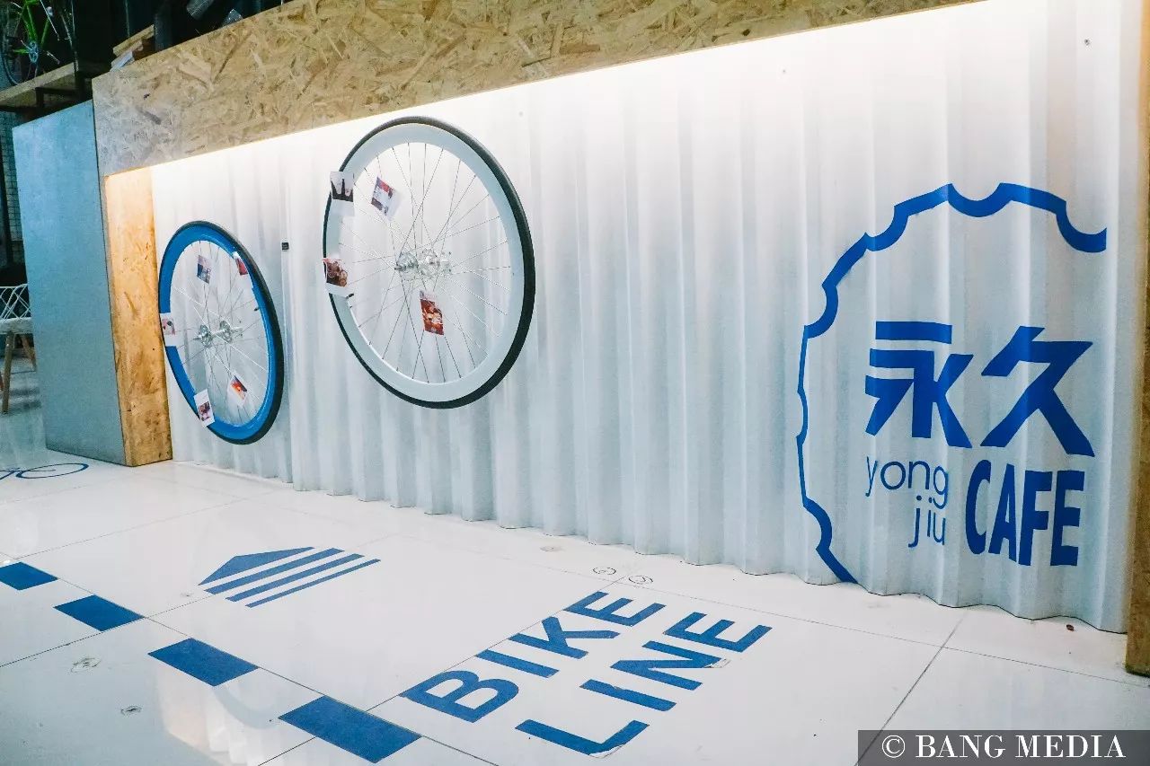 那一面“自行车轮胎墙”堪称最大亮点,墙上的“永久”两字也将复古充分发挥,吸引了所有来访者的注意。