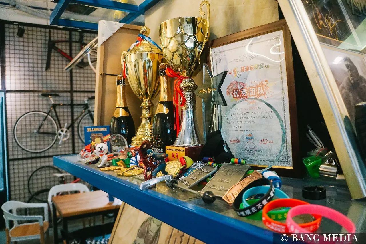 据说,咖啡馆的老板就是上海永久自行车的董事长,他开永久Cafe就是希望为骑行爱好者们提供一个合适的交流场所。走进店里之后,我才发现他并不只是说说而已。店内到处充满着自行车的主题。大到陈列柜上摆放的各种自行车比赛奖状永久自行车官网,它们在向顾客诉说着永久过去的光辉。