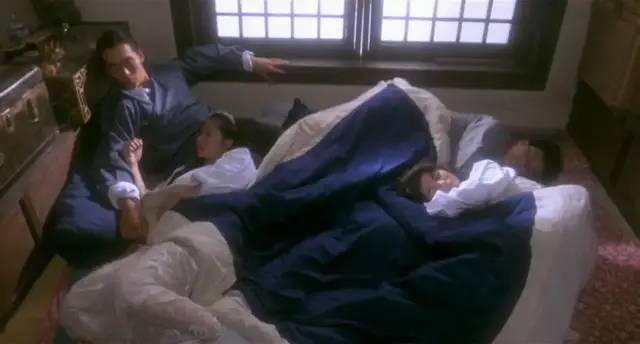 电影史家大卫•波德威尔最赞赏的一场戏就发生在床上。《刀马旦》是徐克一九八六年拍摄的电影,戏班班主女儿叶倩文让几个朋友到闺房躲避追捕,两男两女四人就一起在炕上各找各欢睡下。没承想,一大早,午马饰演的爹来找她。一床被子盖不住四个人,叶倩文、钟楚红、郑浩南等四人于是和午马玩起被子戏,四人东躲西藏,被子一会儿盖住这个一会儿盖住那个,盖不住时刻,叶倩文一把扯开被子裹住午马。波德威尔认为,这里“每一个镜头都精心设计,层层遮掩,把喜剧效果推向极致”(《香港电影的秘密》,12页)。