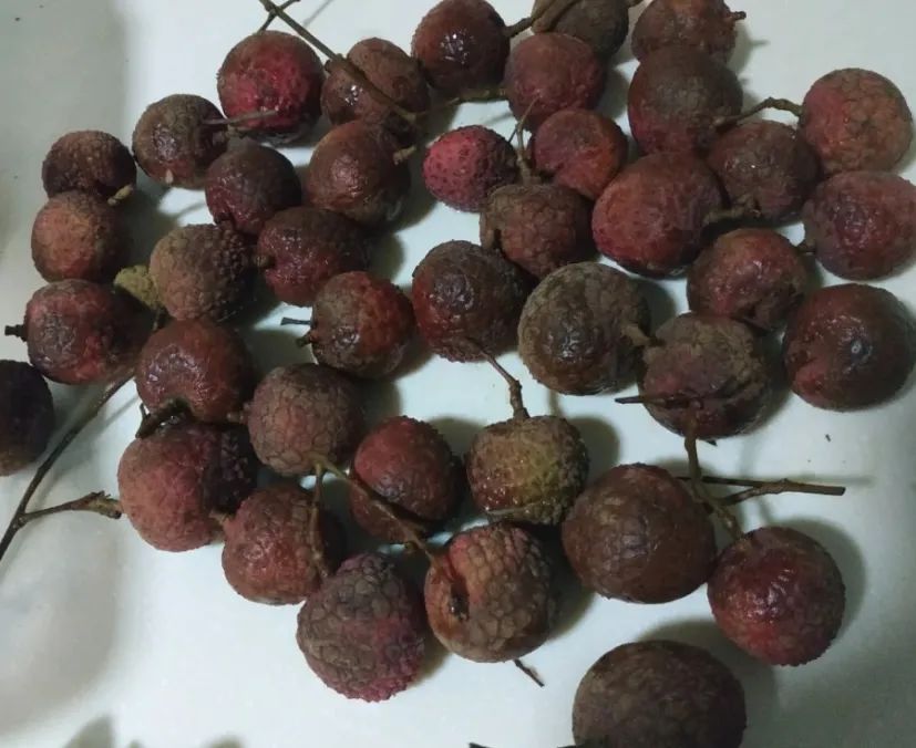 在能用的原片和白片被挑走后,荔枝树上会剩下一些烂果,这些果子理论上已经达不到人类食用的标准,但依然可能有一些无良商家会以很低的价格采购回去制作饮料、果干等产品,这个就是黑片。