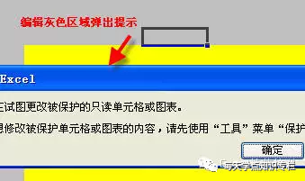按上述步骤操作后,你试着修改黄色区域单元格:ok。你试着在黄色之外的区域修改或插入行/列,就会弹出如下图所示的提示。