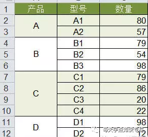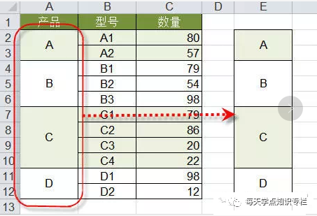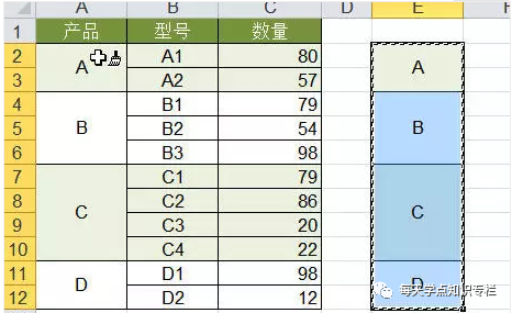 第五步:用格式刷把E列的格式刷到A列,恢复A列的合并格式。