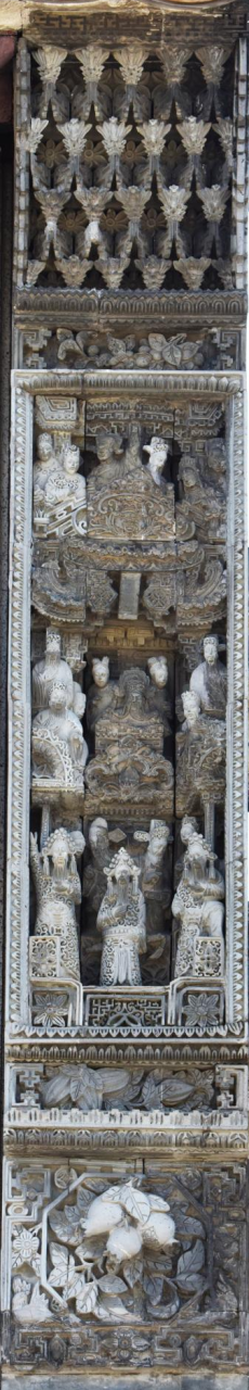 是的。下面我们就分段逐一梳理一下资政大夫祠建筑群墀头砖雕的装饰特点。首先看墀头顶。