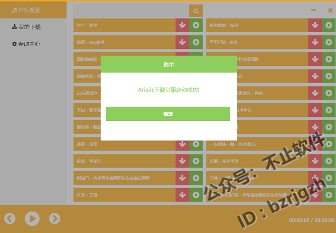 打开Aria2c下载引擎后再打开 超品音乐 软件,回到文件夹,双击文件夹里的可执行程序就可打开软件。支持全网音乐在线试听和下载,完全没有任何限制哦,并且还支持无损音质!