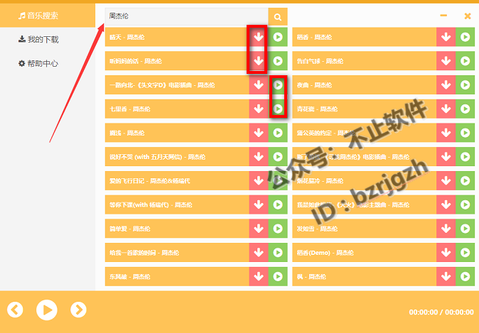 以周杰伦的歌曲为例,大家都知道,在各大平台周杰伦的歌曲那都是需要付费的。这款软件不存在,直接搜索可以周杰伦就能看到全部的歌曲资源,在列表右边就有下载和播放按钮!