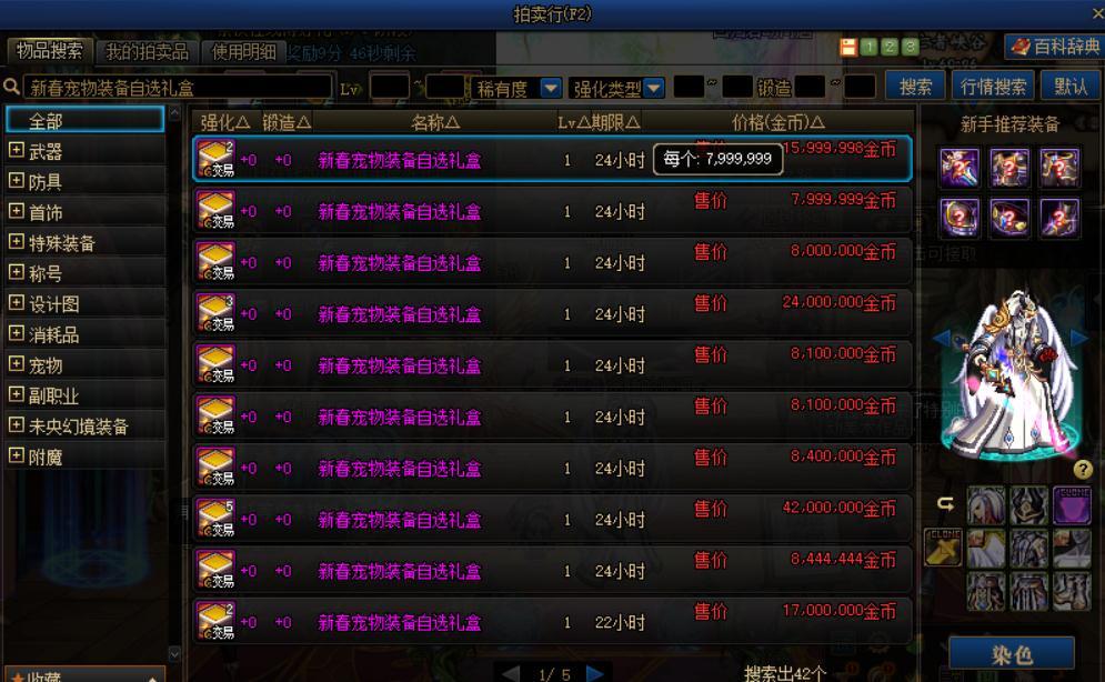 要知道在以前的老版本,宠物还没有普及烂大街dnf宠物装备可以在拍卖上买吗,那时候能拥有一个宠物是很多玩家的梦想。虽然当时开盒子能开出宠物,拍卖行也有宠物蛋卖,但一个宠物蛋的价格可能是很多玩家几个星期的生活费了。而春节宠物更是想都不敢想了,记得有一次春节套竟然卖到了688的天价,要想获得这个玉兔宠物那得花费688啊,这相当于当时很多玩家一个月的工资了啊。