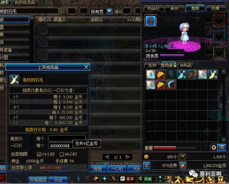 随后这名玩家也是赶紧又以四亿的价格上架了一个宠物蓝装,但结果这一次却是无人问津。直到这件装备被拍卖行到期下架后,也是没能卖出去。