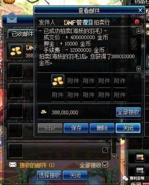 但让人没想到的是,没多久这名玩家以四亿摆上拍卖行的这件蓝色宠物装备竟然真的被人给买下来了。看到这系统发来的交易成功的邮件,还有这到手的近四亿金币,这名玩家也是懵逼了。难道说这件装备是传说中的绝版宠物装备吗,这才会有土豪愿意花四亿购买。