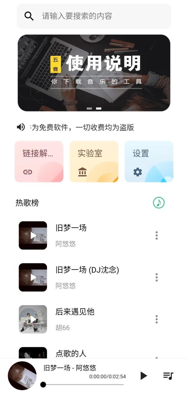 五音助手是一款完全免费无广告的良心安卓端App,用来替代市面上的那些个音乐软件非常合适,不过毕竟涉及版权,能用多久也不知道,大家且用且珍惜吧!