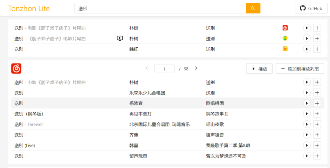 输入歌曲名字,选择搜索的平台,点击搜索,如果没有可以切换平台进行搜索,支持的平台也比较多,这个不行就换下一个,总有一个能搜到的。
