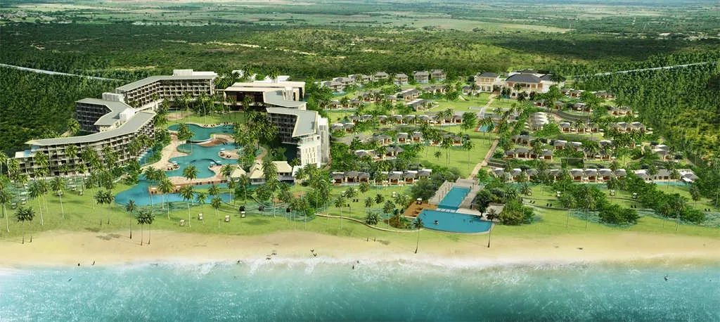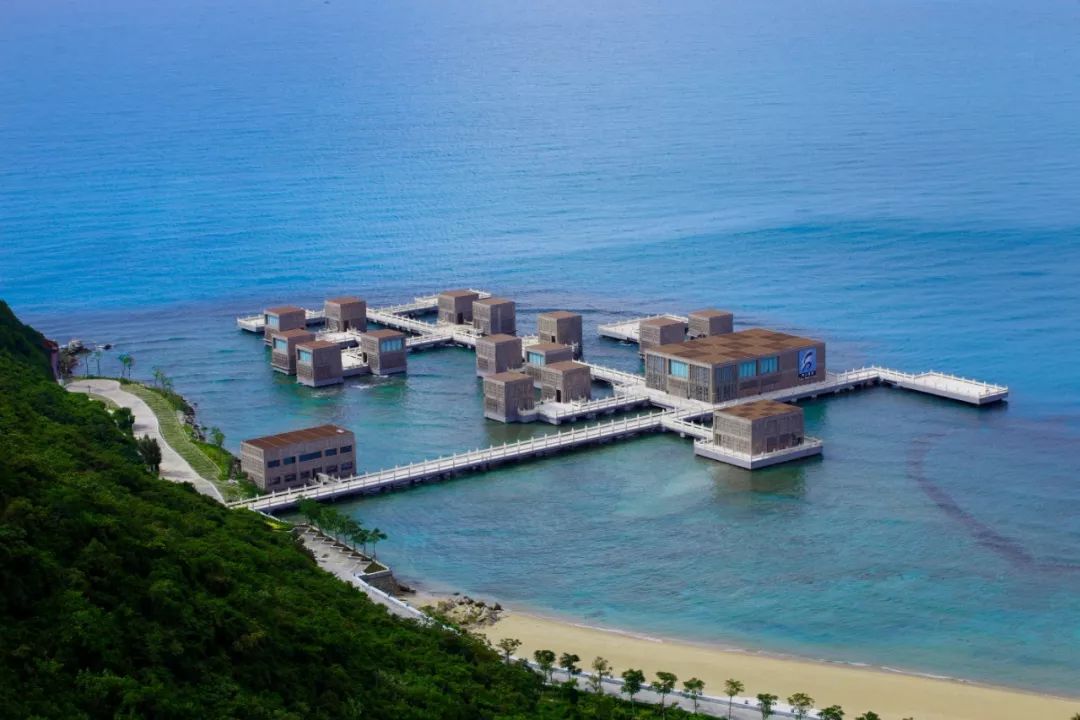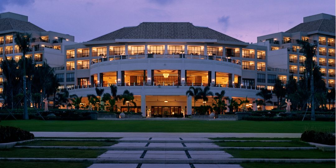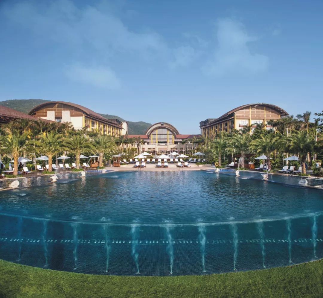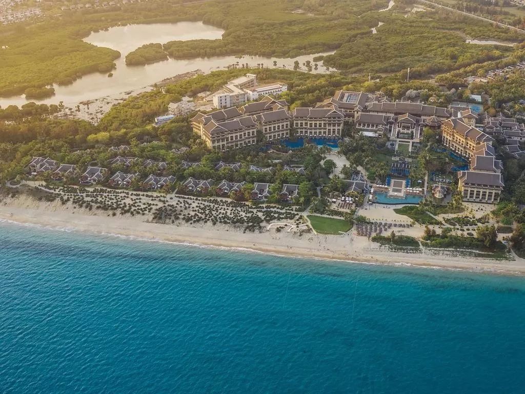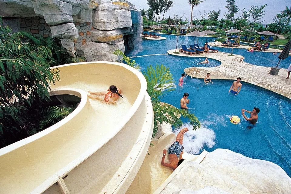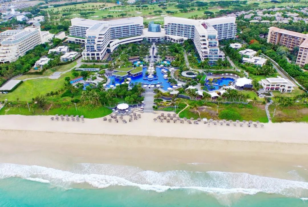 1995年5月15日,三亚亚龙湾那条优美的弧形海岸线的正中位置,一座动用了10.66平方米土地和5千万美元资金的建筑项目正式破土动工。15个月后,一座恢弘的度假酒店拔地而起,她浑身雪白、外墙点缀着一轮轮外挑阳台,如同一条身段修长的豪华邮轮、又似钢琴的洁白琴键。