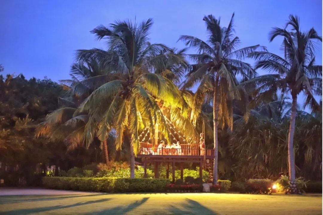 三亚鲜见的全泳池别墅格局确实给这间酒店带来了无与伦比的私密度,也为各种梦幻玩法的开展提供了充足空间,你可以在客房泳池里享用网红的漂浮早餐、也可以在漂浮海上的发呆亭里下午茶、更可在树顶上享用浪漫晚餐。