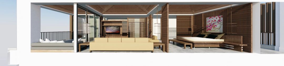 酒店设计师Jean-Michel Gathy在三亚嘉佩乐的客房创作上也极具创建,除了开放式走廊引入、88平方米起跳、坐拥起居式海景阳台的主楼客房外,还打造了两种格局和氛围迥异的别墅房型。