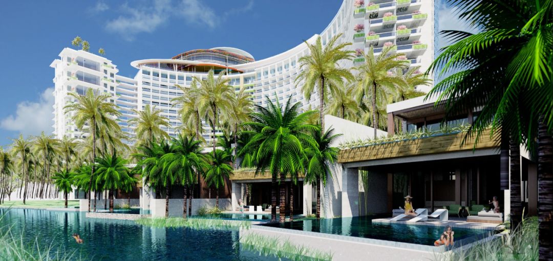 W也选址在海棠湾,和三亚四季酒店接壤。其马蹄形主楼预计装载450间客房。