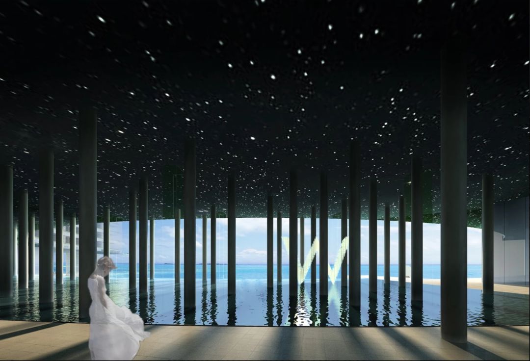 每间W必备的“网红签到Logo”将浮现在到达层的巨大水池之上,由碧海映衬,必将成为潮流人士的签到胜地。