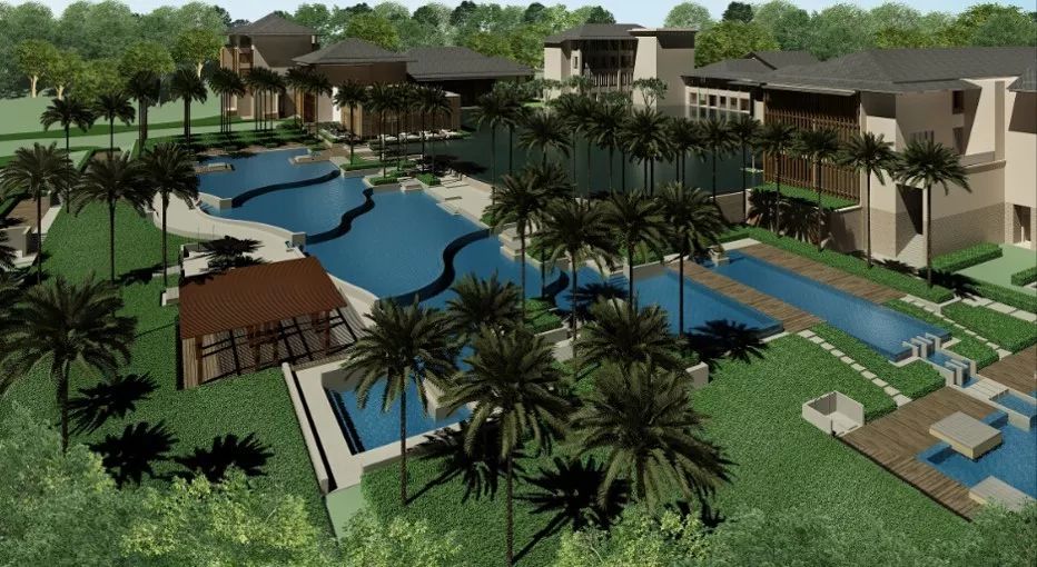 ▲ Jean-Michel Gathy的建筑都是自恋的,建筑物都大篇幅依傍映射池,以便随时透过水面端详自己的面容。三亚太阳湾安达仕也不例外,层叠的泄湖和镜面池让人们误以为度假村具有浮力。