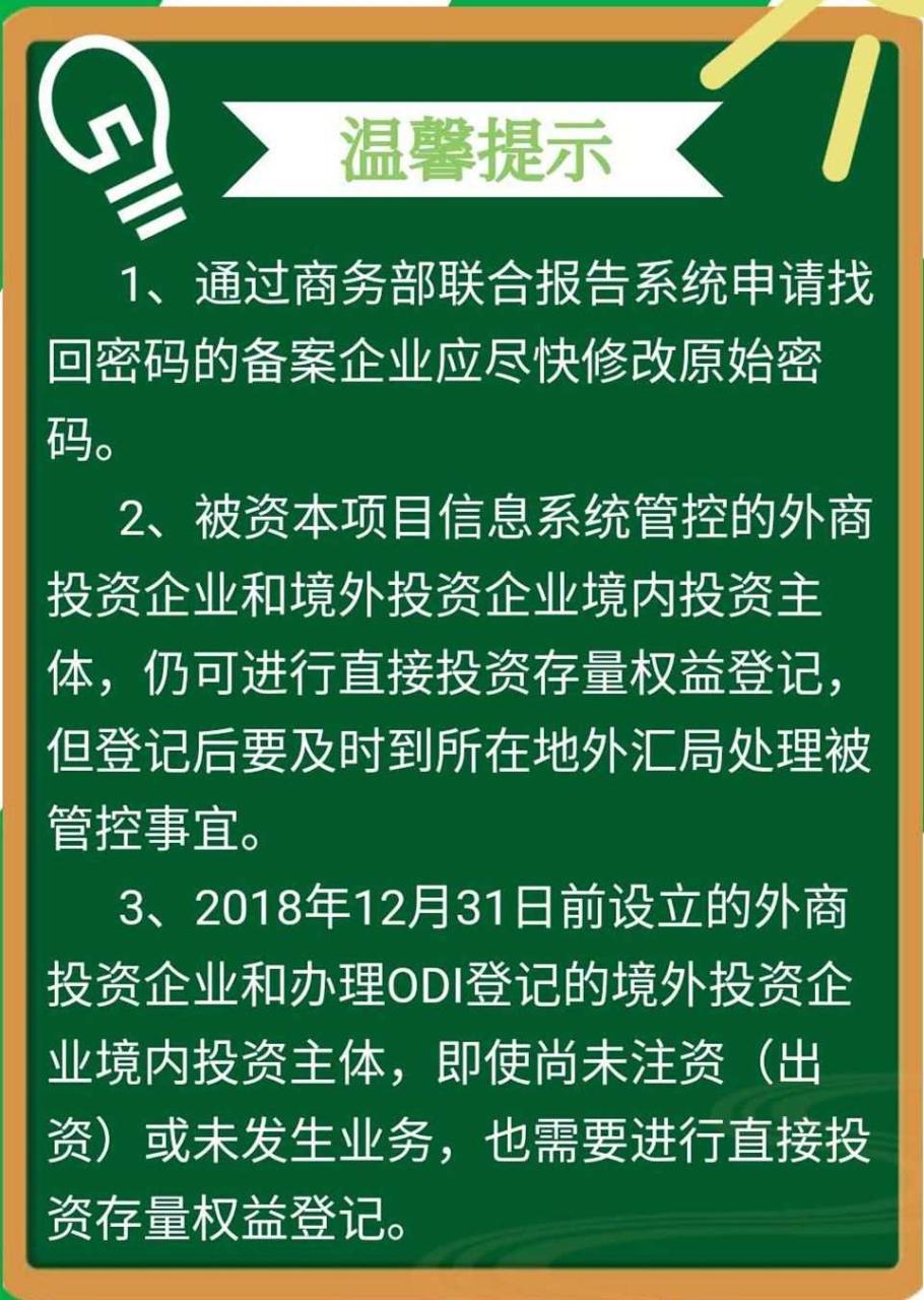 2019年度FDI联合年报及ODI存量权益登记工作截止日期为6月30日,未按照规定或逾期办理存量权益登记的,外汇局会进行业务管控,并依法予以处罚!提醒还没有进行存量权益登记或联合年报的企业,请抓紧最后时间!